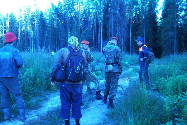 13-ая Лиса получила координаты леса около Щекавцево. Проехать лес по размытым дождями колеям возможности не было. (Гати, которые в своё время строил друг мой Леший, из навалившихся на эти же дороги и просеки деревьев, кстати, активно с криками и воплями воюющими за своё родное болото и грязь по пояс спортсменами-бегунками разбирались:«Ездиют тут всякие! Низзя, тут только мы бегаем!» И эти борцы хлюпали в обход дальше. А пожарные и транспорт прочих спасслужб пусть, как хотят, добираются.) Вот и потрусили мы вместо десяточки километров по лесу все тридцать по окружной дороге с севера. Мне это время показалось бесконечностью. Приехали, прошли проорав выкликивая имя на всех развилках и разветвлениях троп. Ко всяким встреченным грибникам я старалась подойти и показать портрет на распечатанной нашей ориентировке упрятанной в прозрачный файл. Дошли до моста через Загрёбку, прошерстили там, повернули и отправились на север. Там, в какой-то момент на наши крики отозвались женские голоса. Я решила сгонять туда и показать ориентировку. Но наш «старшой», а им был назначен, конечно же, «лизалертовец», сказал, что это женские голоса, а нам нужен мужской в ответ. «Но не зря же они так кричат, надо бы сбегать!» Но спор у меня не удался, побрели дальше. Потом я ещё много раз пожалела, что не настояла на своём… И на старуху бывает проруха.