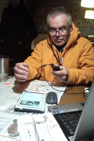 Кстати, вот он наш координатор, спасший жизни многих людей, за работой, в прошлом артиллерист, поэтому его навыки по ориентированию в мирное время просто неоценимы: